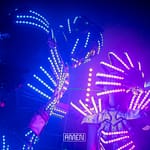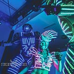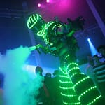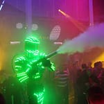 LED-Showacts der Extraklasse: Riesige LED-Roboter tanzen mit dir, sprühen Funken und lassen den Club in purem Neonlicht explodieren.