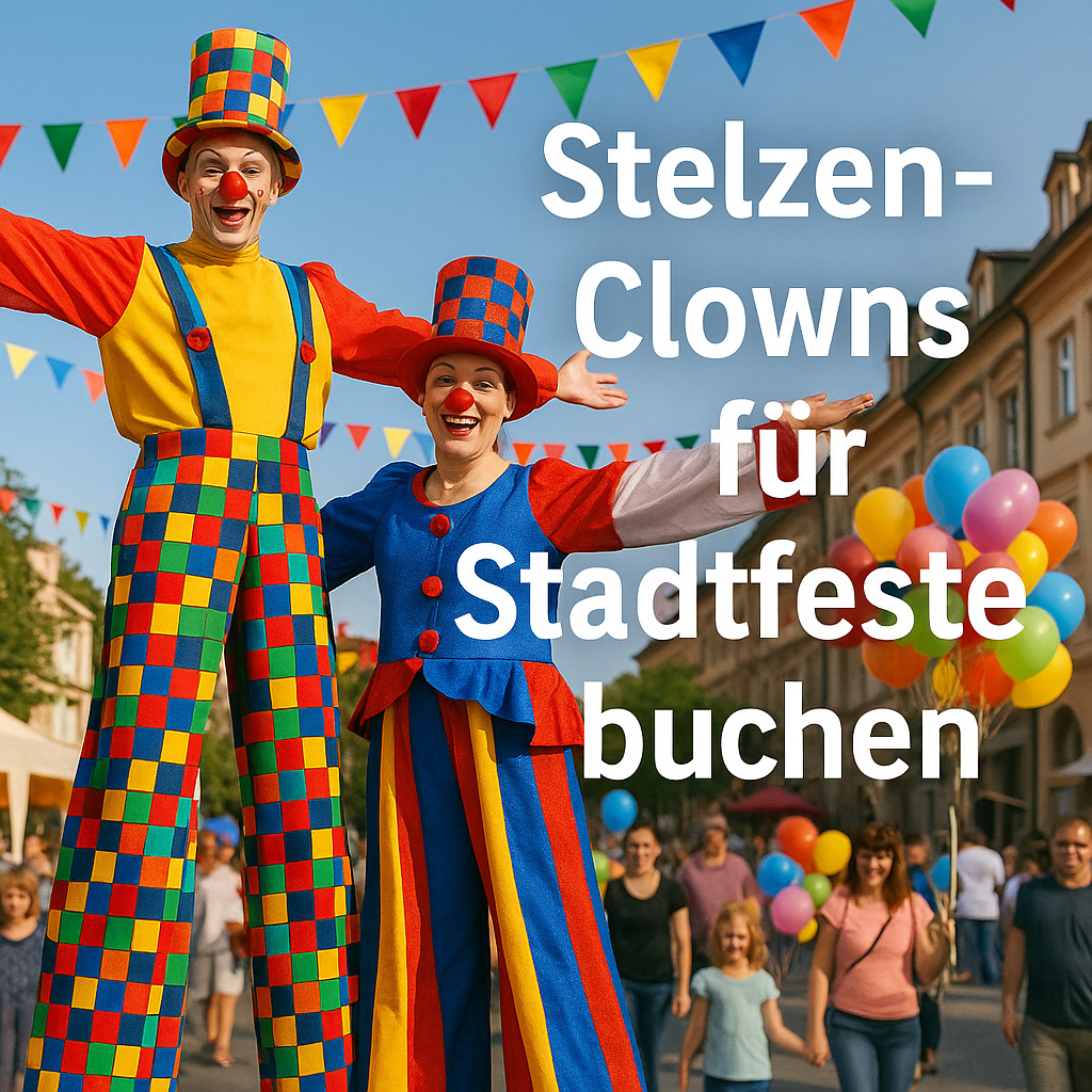 Buchen Sie jetzt Stelzen Clowns für Stadtfeste in ganz Deutschland. Ergänzen Sie Ihr Event mit Feuershows, Stelzen-Acts und individuellen Konzepten – für ein Fest voller Lachen, Spaß und Staunen.